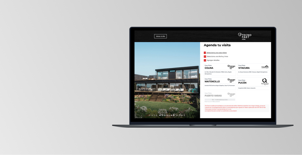 Descripción : En Tecno Fast Home teníamos en el sitio la opción de generar Lead y agendar directamente una visita a la casa piloto. Sin embargo, no existía una trabalizidad de la cantidad de agendamientos desde la web, ya que estaba integrado por Microsoft. Por ende, nos avanzamos en un desarrollo nativo de agendamiento lo que nos permitió integrar con SalesForce toda la data de las agendas, además de crear el evento clave en GA4 y las plataformas publicitarias para optimizar por este KPI con foco en generar más ingresos en el punto de venta.